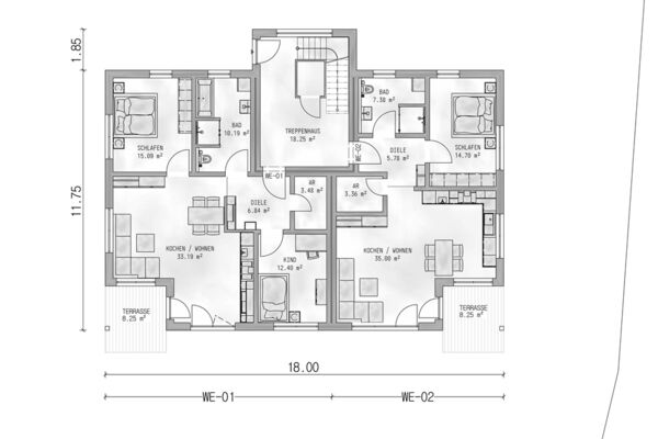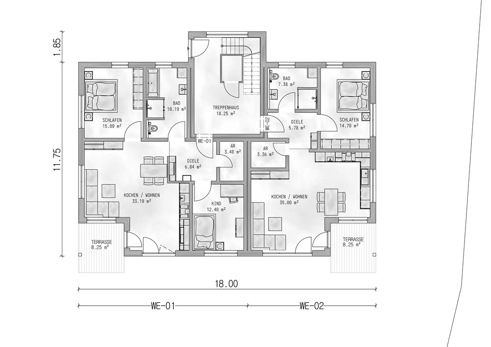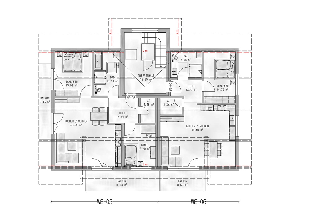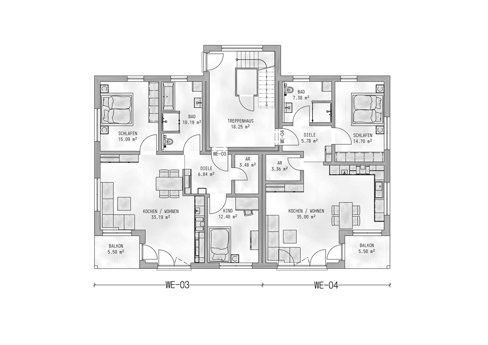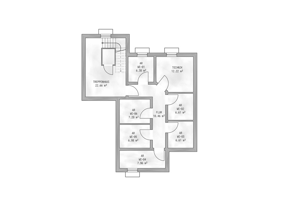 Es wird in natürlicher und wohngesunder Holzrahmenbauweise errichtet. Die Wohnungen liegen in einer Größenordnung von 67 bis 95 m² Wohnfläche. Im Keller befinden sich zudem für jede der sechs Wohnungen abschließbare Abstellräume. Zu jeder Wohnung gehört ein eigener Carportstellplatz und ein Außenstellplatz.