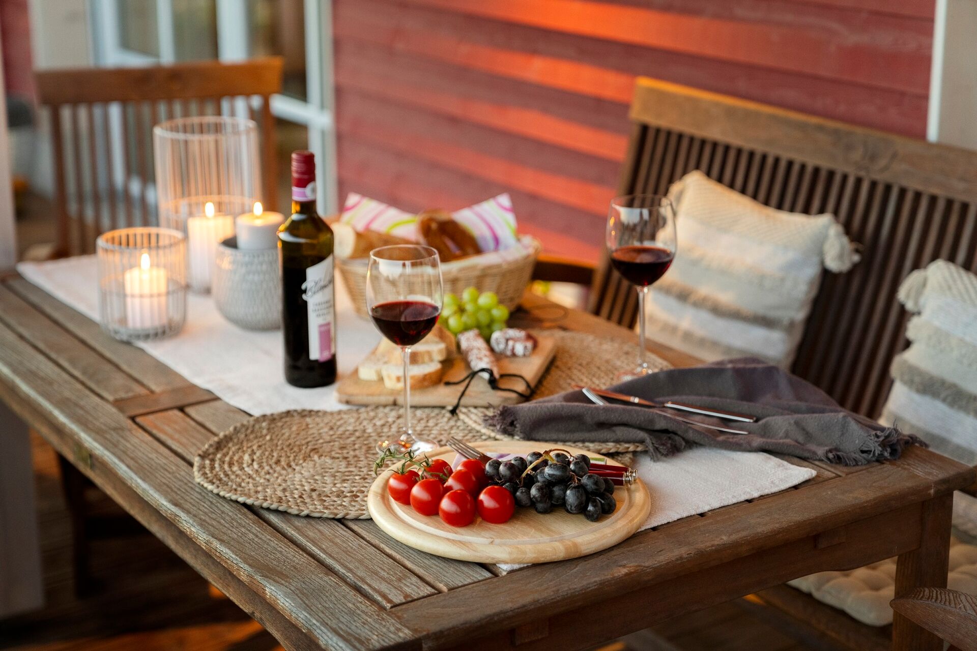 Auf der überdachten Veranda, die zudem von einem Holzgeländer eingerahmt wird, entstehen beim Nachmittagskaffee echte Urlaubsgefühle. Geschützt vor Sonne und Regen genießen die Bewohner den Ausblick in den wunderschönen Garten auch bei nicht optimalen Witterungsverhältnissen.